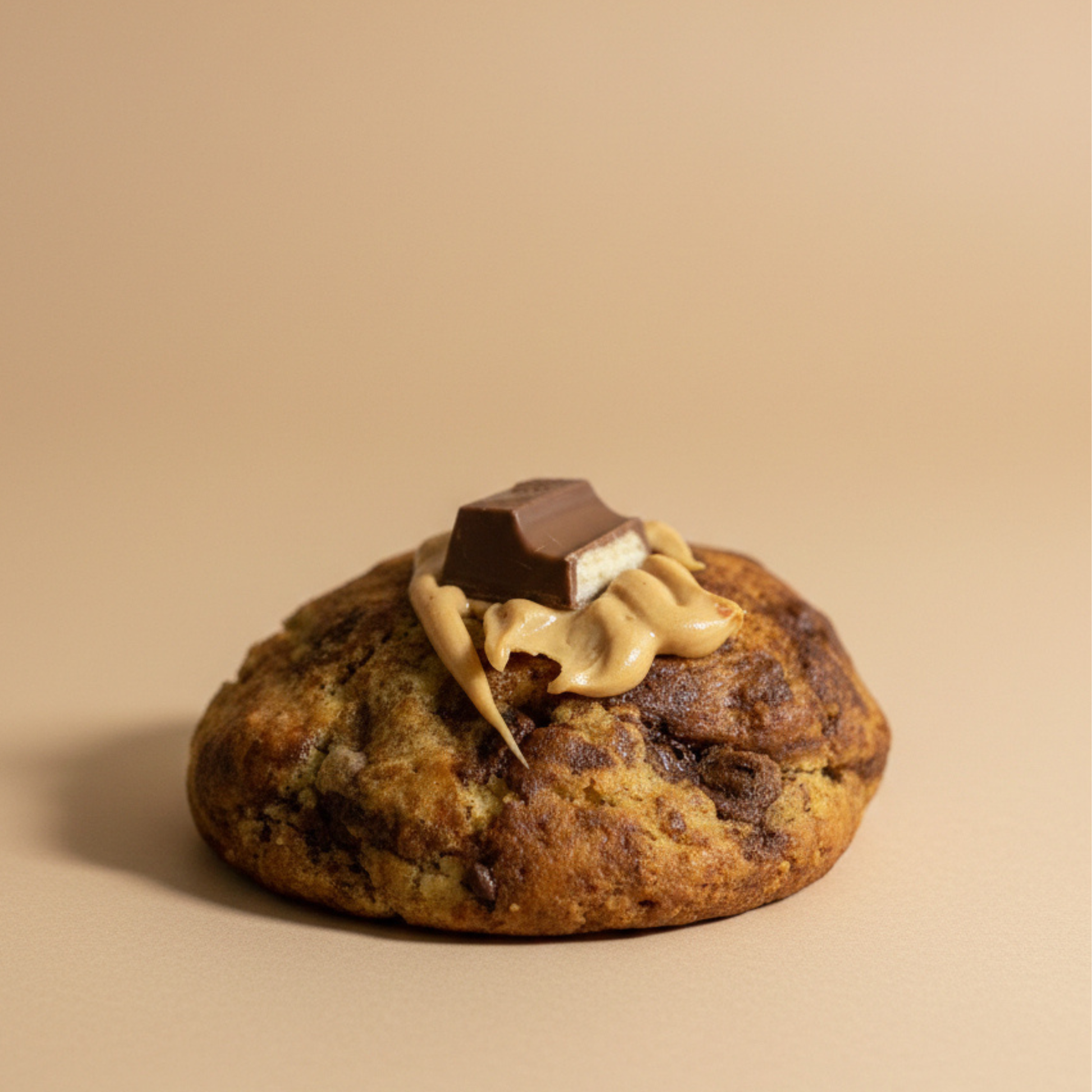 Un cookie épais et moelleux, garni de morceaux de chocolat type Kinder et d’un cœur fondant à la crème Bueno onctueuse.